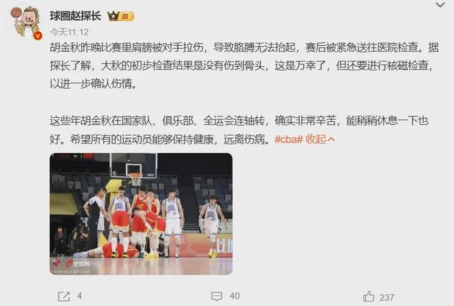 No!胡金秋最新伤情报告!这可是中国男篮第一核心