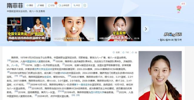 对不少Z世代球迷而言,“隋菲菲”三个字或许略显陌生;但若将时光拨回2003年前后,这个名字就是中国女篮锋线最耀眼的代名词,是无数人青春记忆里的高光符号。