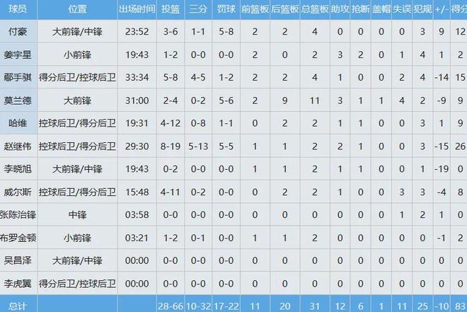 第三节单节5中5独揽14分,最终全场出战31分钟,投篮13中11,三分4中4,罚球8中8爆砍34分外加2板4助1断,正负值+15,带领北京队93-83逆转辽宁队。