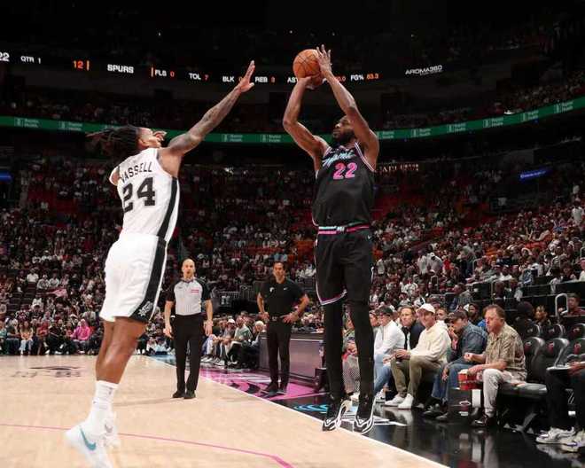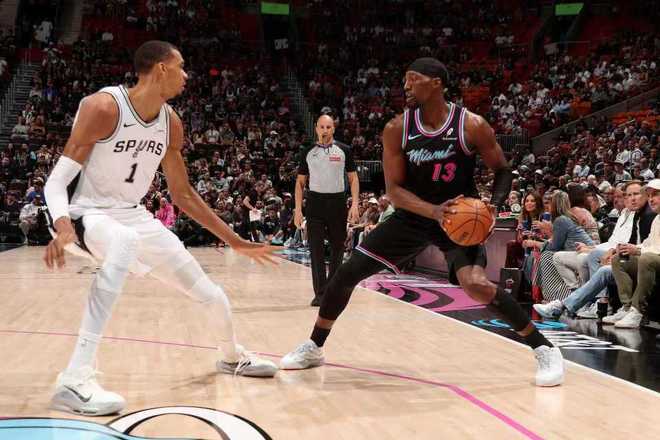 中场休息回来,马刺连续三节得分30+,且限制热火连续三节得分下滑,并在第三节本场首次单节不足25分。马刺率先打出一波13-2攻势扩大29分优势,希罗三分命中,马刺连得4分扩大30分领先优势。热火反扑追到差23分,马刺再度扩大30分优势,哈克斯压哨三分命中,马刺单节32-23净胜9分,三节结束马刺扩大108-81领先热火。前三节比赛,马刺三分31中11,文班亚马22+11+4+5帽与卡斯尔19+7+6,引领5人得分上双;热火三分37中11,阿德巴约17中5得到18分与希罗18分、鲍威尔11分。