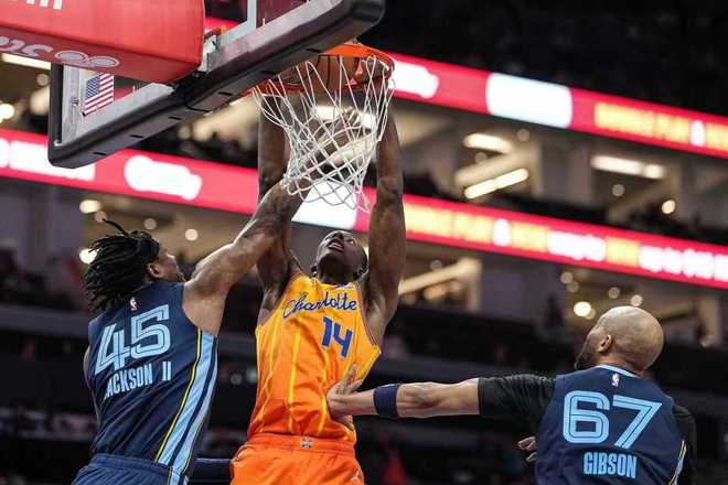 中场休息回来,黄蜂进攻火力大幅提升本场首次单节得分35+,且限制灰熊连续三节得分不足30分。黄蜂率先攻防压制扩大71-51领先20分优势,灰熊持续反扑追到差11分,黄蜂打出一波9-0攻势再度扩大20分优势。黄蜂之后继续压制灰熊,黄蜂单节38-28净胜10分,三节结束黄蜂97-75领先灰熊。前三节比赛,灰熊4人得分上双;米勒20分与三球23分。