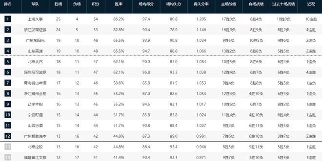 其他几组对决中,辽宁男篮依靠布罗金顿等人出色的发挥,末节实现了大逆转,排名重返联赛第九的位置;福建男篮也是主场斩杀青岛男篮,排名升至联赛第十四名,再次看到季后赛的希望;新疆男篮已经彻底跌出争夺季后赛行列,对阵宁波男篮半场只拿到27分,进攻端已经没有任何竞争力了;广州男篮凭借威金顿最后时刻关键的罚球,主场险胜山西男篮,暂时保住联赛第十二名;北控男篮依靠里勒单场46+5+4的逆天表现,主场力克浙江男篮,排名升至联赛第十三名。
