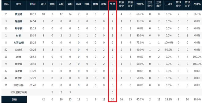 辽宁第二节狂送8次失误,上半场失误数10-2比同曦多出8次。