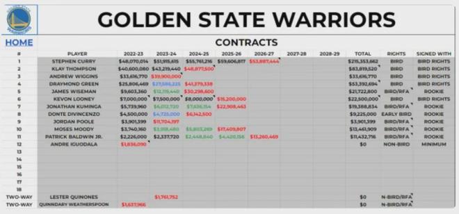 然而2022年夏天的勇士整体球员薪资实在是太高了,签下麦克朗的时候全队也只有13名球员,预计奢侈税已经超过1.51亿美元。