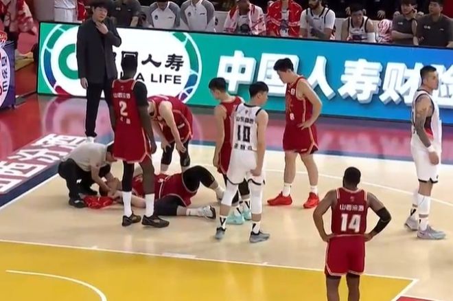 刘传兴直接被担架车给推出场,也是提前退出该场比赛,而山西男篮最终100-94险胜山东男篮。