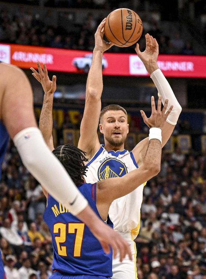 掘金过去5场豪取5连胜,勇士过去3场连赢独行侠、篮网与奇才收获3连胜,本赛季前三次交锋掘金1胜2负处于下风。本场勇士缺少库里、穆迪、巴特勒等,掘金缺少戈登。首节开局掘金7-5领先,勇士连得5分反超,卡约与沃特森各中一记三分反超3分。追梦攻传结合一波8-0夺回领先,掘金之后以15-21落后,约基奇攻传结合追到差2分,勇士继续压制扩大优势,首节结束掘金23-28落后勇士。首节勇士25中11,其中三分17中5,追梦2记三分8分3助攻与波尔津吉斯2记三分6+2+2;掘金20中9,其中三分10中3,约基奇7+3+4与穆雷6+5+2。