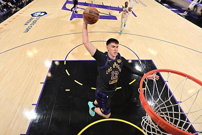 本场比赛中,湖人的先发锋线新星杰克-拉拉维亚(Jake LaRavia)的表现非常抢眼,展现出了自己全面的个人能力。拉拉维亚全场出场38分06秒,投篮5中5,三分线外2中2,罚球2中2,以100%的命中率得到了14分7篮板1抢断的数据,还有1次失误和2次犯规,正负值更是达到了全场最高的+23。拉拉维亚在进攻端展现出了全面的得分能力,他算是将自己在无球移动、篮下终结和外线投篮方面的表现都发挥了出来。不仅如此,拉拉维亚在防守端的表现也是非常抢眼的,他也是将自己的积极性和活力都发挥了出来。拉拉维亚在本场比赛中的正负值高达+23,这也能够说明他在场上时球队的局面有多出色,他也为球队的这场胜利做出了巨大的贡献。