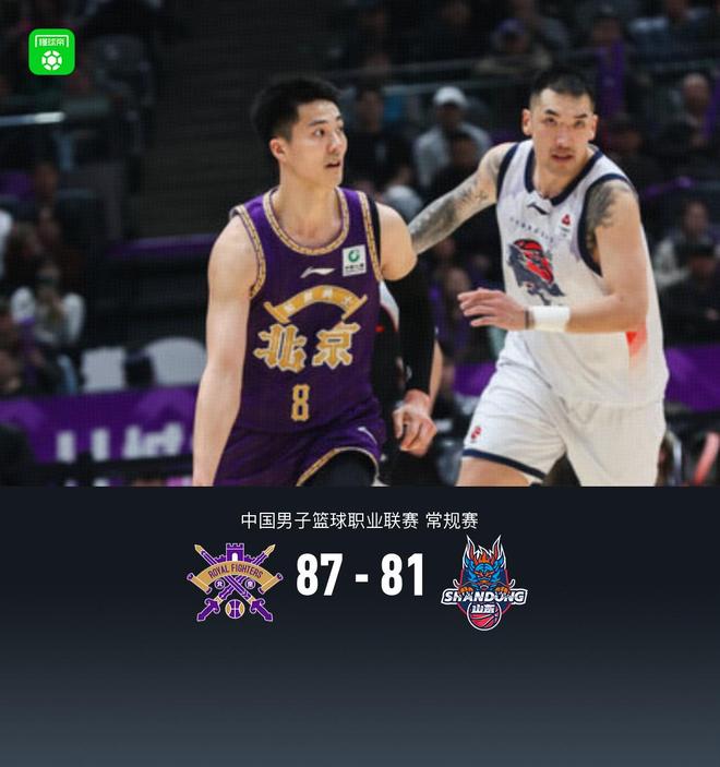 北京时间4月15日中国男子篮球职业联赛 常规赛,北京控股对阵山东高速。半场北控42-43山东,最终北控87-81山东。
