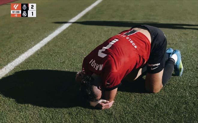 第80分钟,皇马前场获得一个位置非常不错的定位球,但是米利唐的头球遗憾高出横梁。阿韦洛亚虽然接连做出换人调整,但是进攻端的效率却始终没有提高。但是第88分钟,皇马利用角球的机会,由米利唐顶进球门,1:1!皇马终于扳平比分。补时进入第一分钟,马略卡反击到禁区,穆里奇停球劲射,2:1!帮助马略卡再度取得领先,进球后的穆里奇流泪尽情发泄。