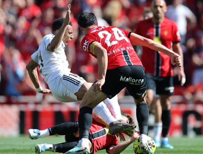 第25分钟,姆巴佩再次获得良机,这一次他在禁区左侧的兜射被门将扑出。姆巴佩短短3分钟内浪费了两次机会。第33分钟,居莱尔的凌空射门再次被门将神勇化解。随后,莫拉内斯的头球攻门顶高了。第41分钟,屡失良机的皇马遭到惩罚。莫拉内斯在禁区内停球后低射近角,球进了!皇马落后了!半场结束,皇马0-1马略卡。
