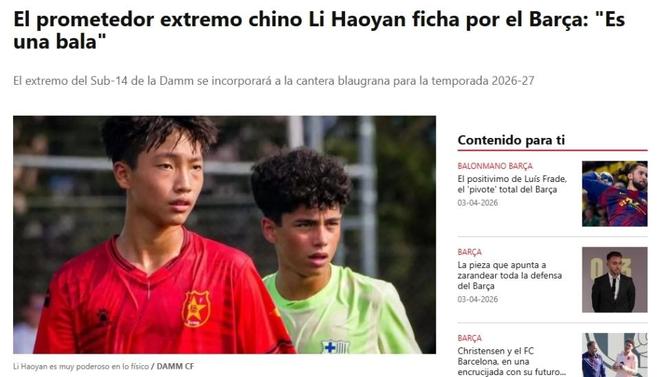 这家西媒还直言,除竞技层面外,如果李昊炎能够在巴萨青训体系中持续成长,其中国背景也可能在市场层面带来额外价值,尤其是在亚洲市场的关注度方面。