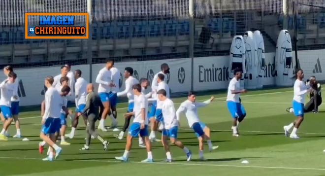 据报道,在皇马对阵拜仁的赛前最后一练中,费兰-门迪参加了球队合练。