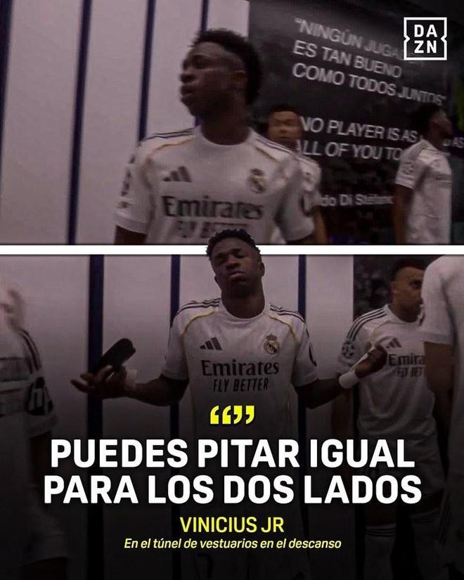 这也让巴西巨星十分不满,据悉,维尼修斯被摄像机捕捉到在中场休息的球员通道时向裁判抱怨:“你应该对两支球队进行公正吹罚。”