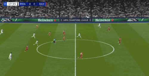 第9分钟,基米希的传中制造威胁,于帕梅卡诺无人盯防获得绝佳机会,但一脚踢呲,这样的射门反倒是晃了卢宁,卡雷拉斯完成了门线解围。