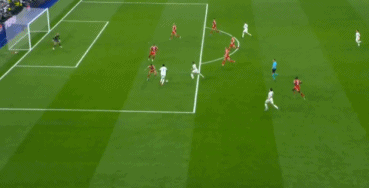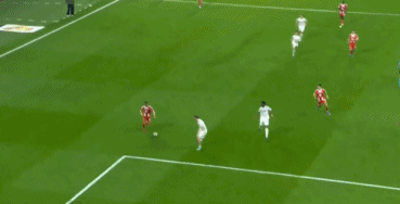 第89分钟,奥利塞右路内切传中,阿方索-戴维斯回敲,穆西亚拉劲射打偏,皇马差点再丢一球。