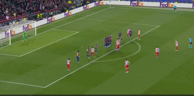 马竞上半场无论是控球率射门都是落后的一方,但西蒙尼的反击战术却收到奇效;阿尔瓦雷斯刚过中场发动长传反击,小西蒙尼反越位前插形成单刀被库巴西拉倒在禁区前沿,因为是最后一名防守球员,库巴西被红牌直接罚下;2年前阿劳霍也曾在欧冠8强对阵大巴黎被红牌罚下,从而导致巴萨被淘汰。随后阿尔瓦雷斯直接任意球爆缸世界波破门,0:1!值得一提的是,马竞队史欧冠只有5次直接任意球破门,阿尔瓦雷斯一人便完成了2次。
