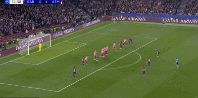 第45分钟,阿尔瓦雷斯直接任意球破门,马竞1-0巴萨!