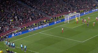 第45分钟,正是利用这次任意球机会,阿尔瓦雷斯主罚打入右上死角,马竞1比0领先并多打一人。