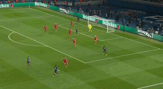 第11分钟,杜埃左翼拿球,禁区内转身摆脱后起脚射门,皮球打在回防的赫拉芬贝赫脚跟,以一个抛物线吊过马马达什维利入网,巴黎1比0领先。