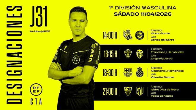 北京时间4月10日,西班牙足协官方公布了周六西甲4场比赛的裁判安排,亚历杭德罗-埃尔南德斯将执法巴塞罗那vs西班牙人。
