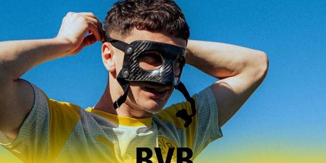 据报道,多特蒙德18岁中后卫卢卡-雷贾尼鼻梁骨折,他将暂时佩戴面部护具。
