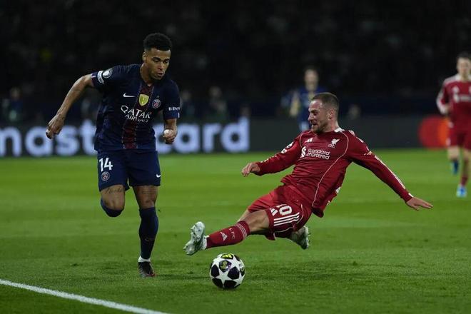 斯洛特的利物浦从比赛开始就非常“低调”,变阵三中卫,整个阵型压缩在本方半场,目的显然是在首回合尽可能少丢球——他们也几乎没有展现出任何进攻。如果说去年的欧冠赛场上,利物浦是意外地被巴黎圣日耳曼压制,今年利物浦则是有意想要躲避对手锋芒。但这次巴黎准备更加充足,没有再出现去年狂轰30次无果反遭偷袭的局面。巴黎在上半场占据75%控球率,完成8次射门,其中4次打正;利物浦上半场则一次未有射门。