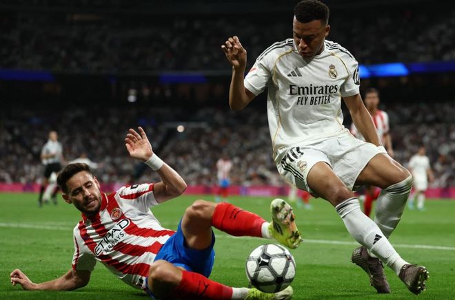 皇马身价高达2亿欧元的头牌姆巴佩哑火了,他全场5次射门,2次射正,0进球,20次丢失球权全场最多。姆巴佩在皇马连续7场比赛只进了1球。在欧冠淘汰赛附加赛首回合与本菲卡的比赛,姆巴佩5次射门0进球。随后在皇马与奥萨苏纳的比赛,姆巴佩2次射门0进球。皇马与曼城的欧冠1/8决赛次回合比赛,姆巴佩替补上场1次射门0进球。随后在皇马击败马竞的比赛,姆巴佩0射门。接着在皇马爆冷输给马略卡的比赛,姆巴佩6次射门0进球。直到上一场皇马与拜仁的欧冠比赛,姆巴佩才终结进球荒,打进1球。这次与赫罗纳的比赛姆巴佩再次哑火。
