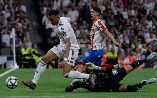 比赛开始后皇马多次制造出机会,但是,贝林厄姆、姆巴佩和维尼修斯等人的射门都没能够打进。直到下半场第51分钟,皇马才取得进球。巴尔韦德轰出一脚超级世界波,攻破了加萨尼加把守的大门。但是,在第62分钟,皇马丢球了。勒马尔也是打进一粒世界波,扳平比分。此后皇马不断换人调整,但是,始终没能再进一球。姆巴佩最后时刻禁区内倒地,裁判没有判罚点球。最终的比分定格为1-1!皇马多赛一场落后巴萨6分,争冠希望渺茫。