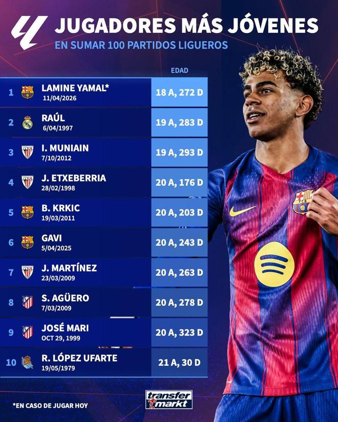 1. 亚马尔(巴塞罗那)18岁272天(2026年4月11日)