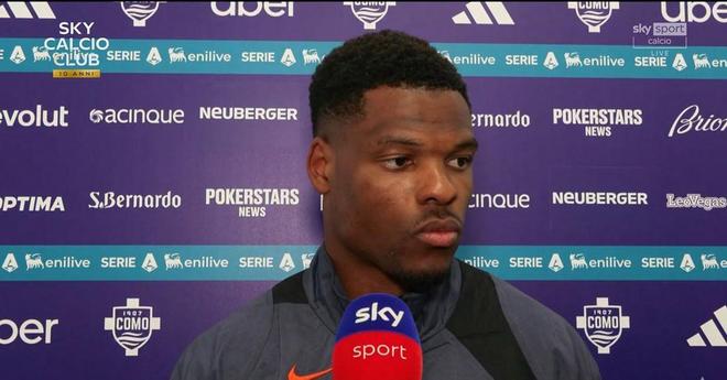 北京时间4月13日,在意甲第32轮的比赛中,邓弗里斯完成的梅开二度帮助国际米兰在一度0-2落后的情况下最终客场4-3逆转战胜科莫,赛后这位当选全场最佳球员接受了意大利天空体育的采访。