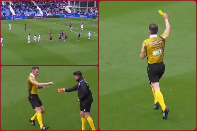 上半场第22分钟,哈维-米耶尔对路易斯米-克鲁斯犯规,主裁判乔恩-安德-冈萨雷斯将手伸向裤兜准备向哈维-米耶尔出示黄牌,却发现自己没带牌。