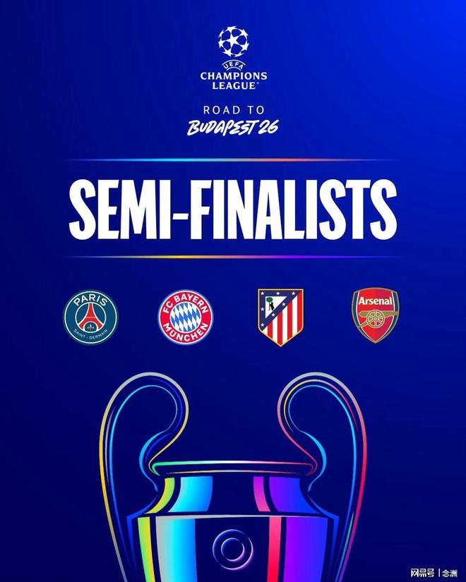 欧冠1/4决赛全部结束,本赛季欧冠四强名单正式揭晓,半决赛拜仁慕尼黑对阵卫冕冠军巴黎圣日耳曼,阿森纳迎战马德里竞技。两回合角逐将于4月29日-30日及5月6日-7日凌晨展开。