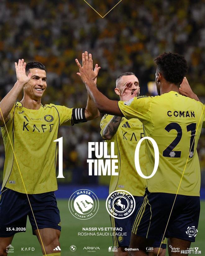 沙特第29轮,利雅得胜利主场1-0达曼协作,多赛1场领先第二名8分。C罗远射造成对手门将脱手,科曼补射破门,C罗远射被后卫亨德利救险,主裁先判点球后亲自观看VAR取消点球判罚,亨德利肘击菲利克斯被红牌罚下。