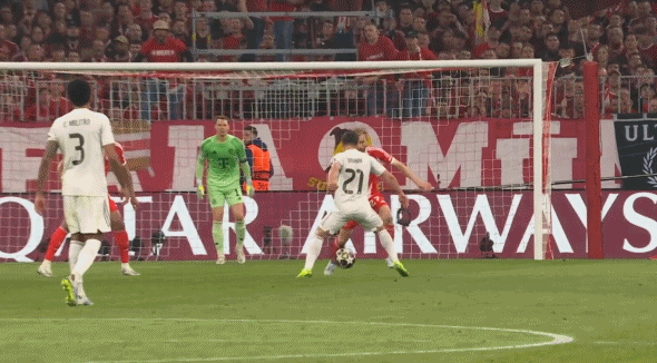 皇马与拜仁的次回合比赛中,迪亚斯在第28分钟为皇马赢得前场任意球,居莱尔通过这次机会主罚得分,这个任意球的判罚引发了球迷的一些讨论,让我们看看情况是怎样的。