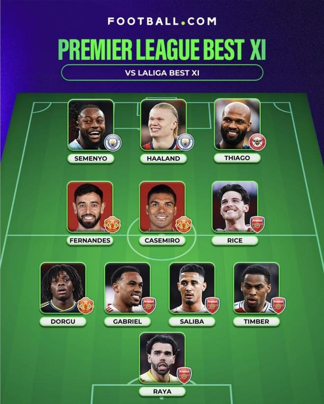 最近网络上流传出一份“西甲与英超赛季最佳首发十一人”的对比名单,本意是想让两大联赛分个高下,结果名单一出来,两边的球迷都坐不住了。英超这边,阿森纳的防线几乎被整锅端了进来,甚至还带上了身价暴跌的老将卡塞米罗;而西甲那边更离谱,为了强行凑齐前场的超级巨星,竟然连目前世界上身价最高的贝林厄姆都给挤掉了。这名单到底是按表现排的,还是按名气胡凑的?今天我们就把这两套阵容拆解开来,看看这背后到底藏着多少让人看不懂的“神操作”。