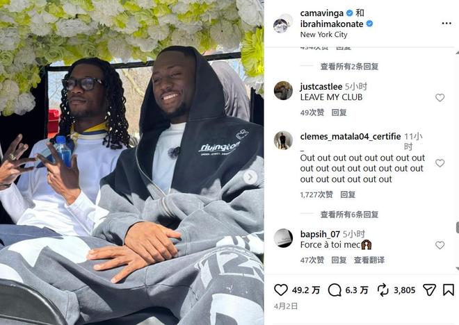 在比赛结束后,皇马球迷也是怒不可遏,冲到卡马文加上一条社媒下进行了攻击,表达了希望他离开球队的意愿。