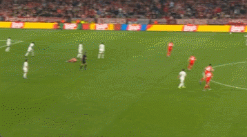 可惜球去到前场,分球给到姆巴佩,他在右路没有太好的进攻手段,反倒是让反击减速了。不过皇马这边利用贝林厄姆的跑动与对抗,多次破开拜仁的高位逼抢,也成为后续拜仁危机的开始。
