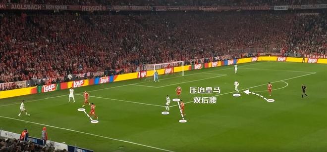 拜仁跟皇马同时散开队形,贝林厄姆在中场的连接效果比拜仁好,拜仁会更依赖于凯恩回撤,贝林厄姆却能给迪亚斯带来帮助。