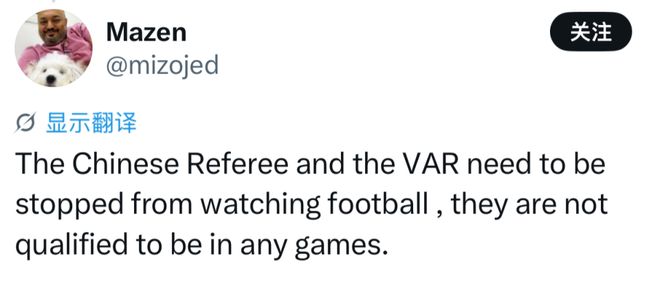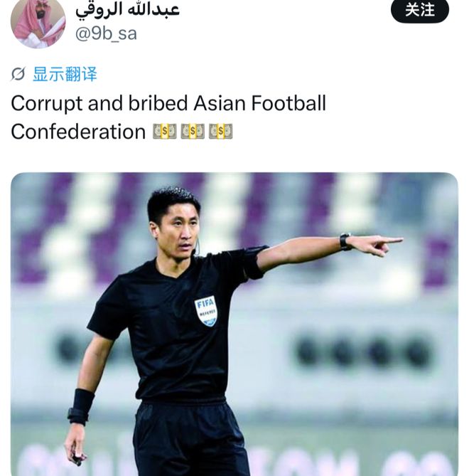“中国裁判需要被禁止执法,他们没有资格执法任何亚洲顶级赛事!”;“应该禁止东亚裁判执法亚冠,他们嫉妒沙特联赛球队的强大,因为总是抢走他们的分数!”;“受贿且腐败的亚足联!”