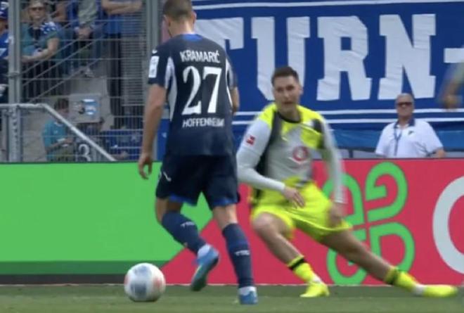 霍村vs多特主裁解释判点:聚勒倒地时手臂向上移,阻挡了射门