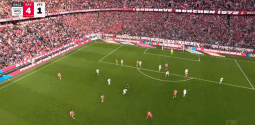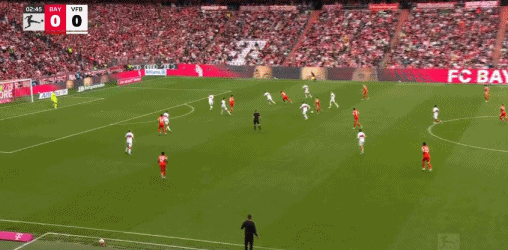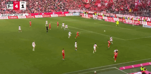 第37分钟,路易斯·迪亚斯横传,阿方索·戴维斯点球点附近折射破门,拜仁3-1斯图加特。