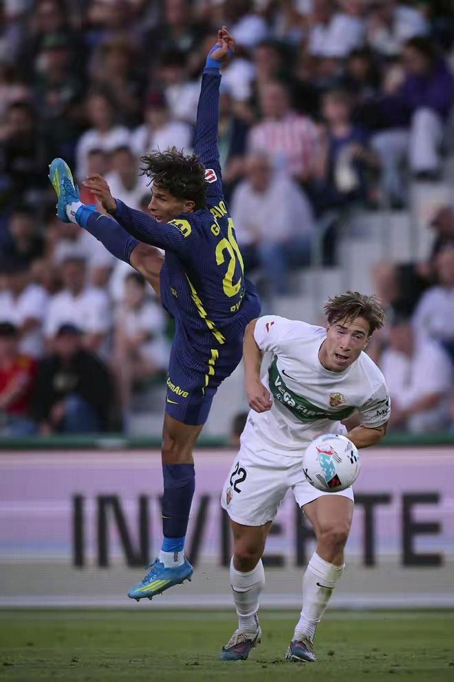 比赛伊始,客场作战的马德里竞技并未展现出积分榜前列球队应有的压制力,反倒是主场作战的埃尔切表现得更加积极主动,拼抢极具侵略性。上半场的比赛节奏极快,双方在中场的争夺异常激烈。率先打破僵局的是马竞,尼科·冈萨雷斯在混战中抓住机会,为球队首开纪录。然而马竞的领先优势犹如昙花一现,埃尔切迅速做出回应,阿芬格鲁成功将比分扳平。此后场上风云突变,成为了整场比赛的转折点。马竞球员阿尔马达在禁区内防守时出现致命失误,不仅犯规送给了对手一粒点球,还因此被主裁判直接出示红牌罚下。少打一人的马竞陷入绝境,安德烈·席尔瓦顶住压力主罚点球命中,埃尔切将比分反超为2-1。在极其不利的局面下,尼科·冈萨雷斯再次挺身而出,凭借个人能力再度攻破埃尔切的大门,在半场结束前第33分钟将比分顽强扳为2-2平。上半场33分钟内,双方联手奉献了4粒进球和1张红牌,场面堪称疯狂。