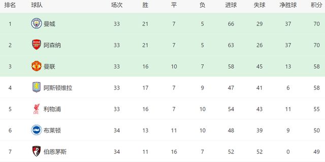 在曼城1-0击败伯恩利之后,阿森纳坐了半个多赛季的榜首宝座,终于还是丢了,在积分和净胜球相同的情况下,因为进球比曼城少3个,阿森纳只能屈居第二。
