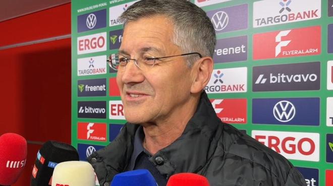 在德国杯半决赛客场2-0击败勒沃库森成功晋级决赛之后,拜仁慕尼黑主席海纳在混合采访区接受了现场诸多媒体的采访。