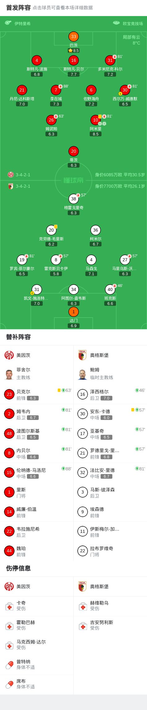 北京时间2月7日德国足球顶级联赛 联赛 第21轮,美因茨主场对阵奥格斯堡。美因茨阿米里梅开二度。最终比分美因茨 2-0 奥格斯堡。