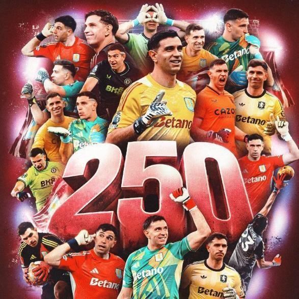 需要特别值得一提,本场比赛,是阿根廷门将马丁内斯维拉生涯250场里程碑。根据统计,自2020年夏窗以1740万欧从阿森纳转会到维拉后,马丁内斯已在各项赛事中完成250次登场,78次零封对手。马丁内斯成为第三位在单一英超俱乐部完成250次出场的南美门将,前两位是埃德森、阿利松。埃德森曾为曼城出场372次,而阿利松已经为利物浦出战332场。只可惜在自己的里程碑之夜,大马丁没能零封帮助球队,反而迎来一场败仗。