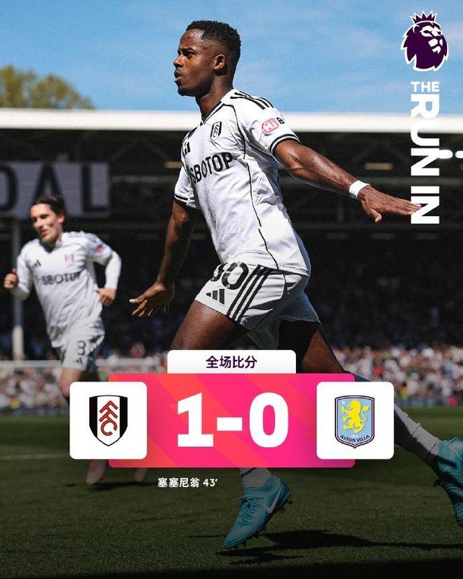 维拉客场爆冷输给富勒姆,这或许是英超官方最愿意看到的画面。北京时间4月25日晚,英超第34轮先赛一场,富勒姆坐镇克拉文农场球场,凭借塞塞尼翁在上半场补射破门,1比0爆冷击败阿斯顿维拉。维拉各项赛事六场不败就此终结,但先赛一场的他们暂时仍然留在积分榜第四位。