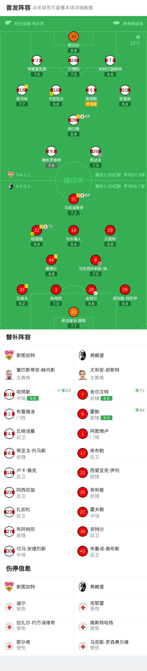 第28分钟,弗赖堡角球机会,埃格施泰因打破僵局,斯图加特0-1弗赖堡