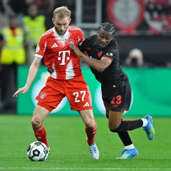 易边再战,落后的勒沃库森在下半场进行了人员与战术上的调整,试图扭转不利局面,球队在进攻端的投入明显增加,也给拜仁的防线制造了一定的压迫感。然而,拜仁慕尼黑在稳固防守的同时,依然保持着犀利的防守反击态势。面对勒沃库森一波接一波的攻势,拜仁后防线众志成城,没有给对手留下任何实质性的得分良机。