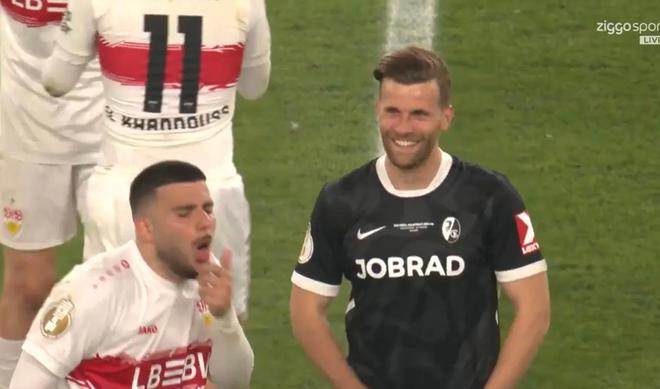 比赛中,斯图加特中场哈努斯身体不适,转播镜头随后将镜头从球场上移开,因为这名球员似乎呕吐了,之后他把头埋进了球衣里。